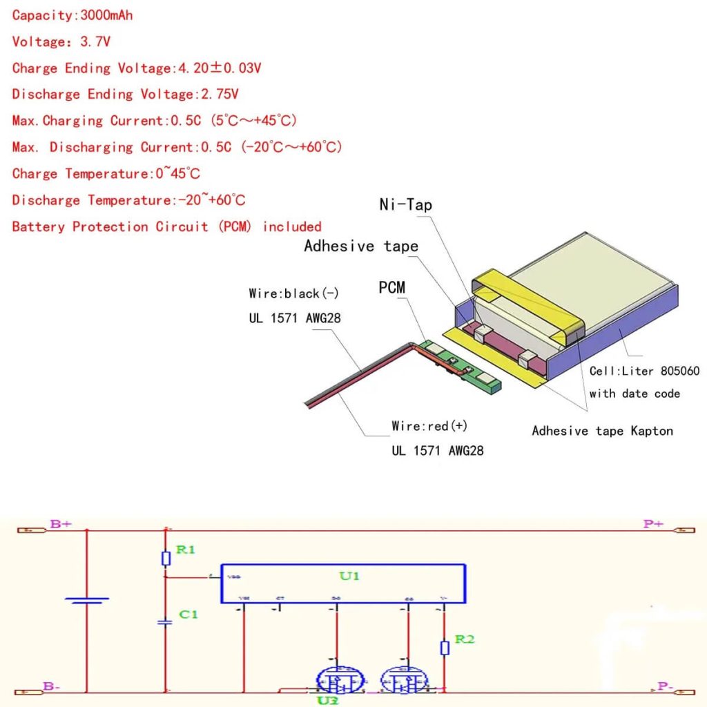 | Kapasitas: | 3000 mAh | Charge Voltage: | 3.7-4.2V |