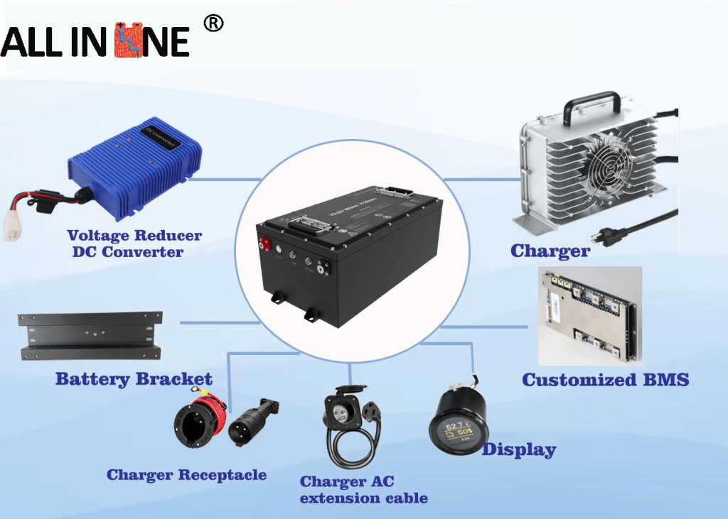 7)We can provide complete system solution, such as the charger, voltage reducer, bracket,etc