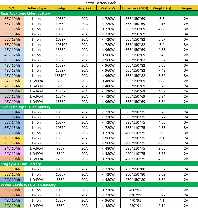 Bisa disesuaikan ukuran lan batere Tipe Li-lon