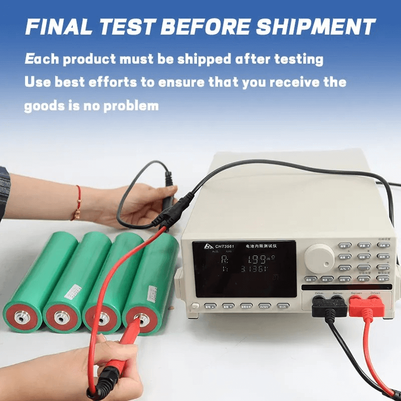 Kita bakal nyoba kabeh voltase batere lan resistensi Internal sadurunge dikirim.