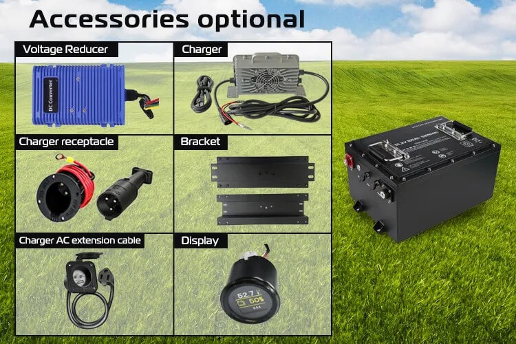 【LCD Monitor Baterai Cerdas】The ALL IN ONE lithium golf cart battery offers robust acceleration and performance, enabling users to conquer challenging terrain and extend their golf range up to 50 miles on a single charge.