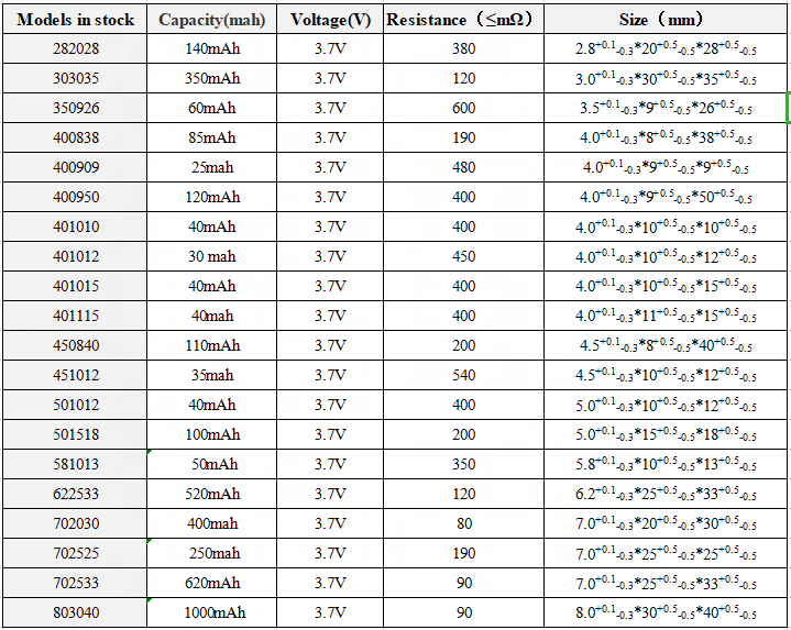Jeneng Produk | 581013 baterei lithium polimer 50mAh | Cathetan | |