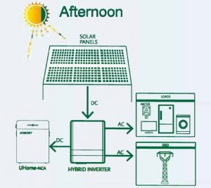 ![]() | Baterai bakal nguatake beban AC nalika srengenge surup. |