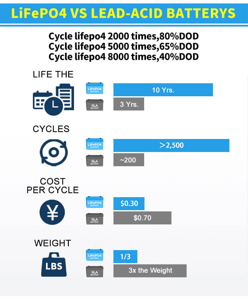 ◆ Nggunakake teknologi sel fosfat besi lithium, keamanan sing unggul, ewonan siklus, 100% DOD, ing kahanan normal.