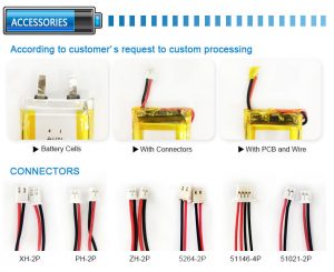 | 702040 | 7,0 * 21 * 40mm | 7,2 * 22 * 42.5mm | 3.7V 500mAh |