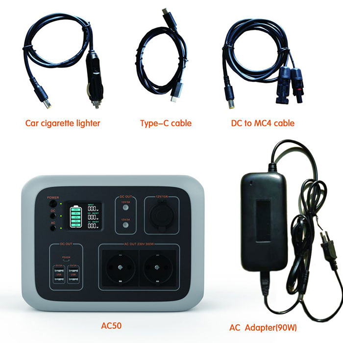 Kabisan kabisan 120% Certified: CE RoHS IEC Jeneng merek: ALL IN ONE Aplikasi: HOME Spesifikasi: MINI Charge PV: MPPT 120W / 4H On / Off Grid: Off Grid Ukuran produk: 260 * 200 * 196mm Bobot: 6,5Kg Jeneng Produk AC generator solar portable AC50 Materi ABS + PC Fungsi Generator solar portable Paket kothak warna menyang kothak karton