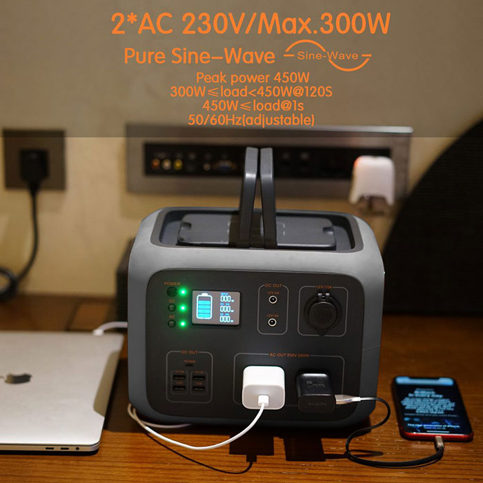 500Wh Suplai Daya Generator Daya 500Wh kanthi Cukup 300W DC / Inverter, output DC / AC / USB kanggo Outdoor Camping Travel