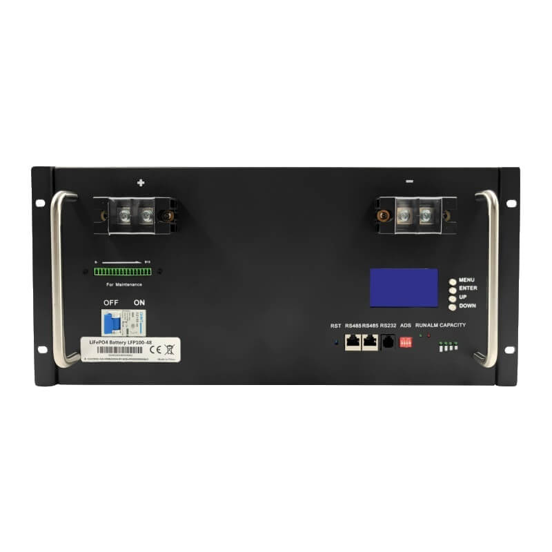 Sistem batere 48V 200Ah LFP iki wis nduwe BMS internal lan kothak stainless steel dicet kanthi ireng utawa putih.