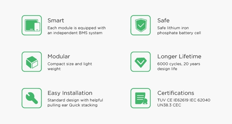 Sertifikasi & Keamanan Stadard | TUV / CE / EN62619 / IEC62040 / UN38.3 / CEC Diakreditasi | |