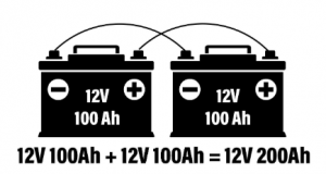 Ing conto ing ngisor iki, kita duwe rong bathi 12V, nanging sampeyan ndeleng kenaikan amp-jam nganti 200 Ah.